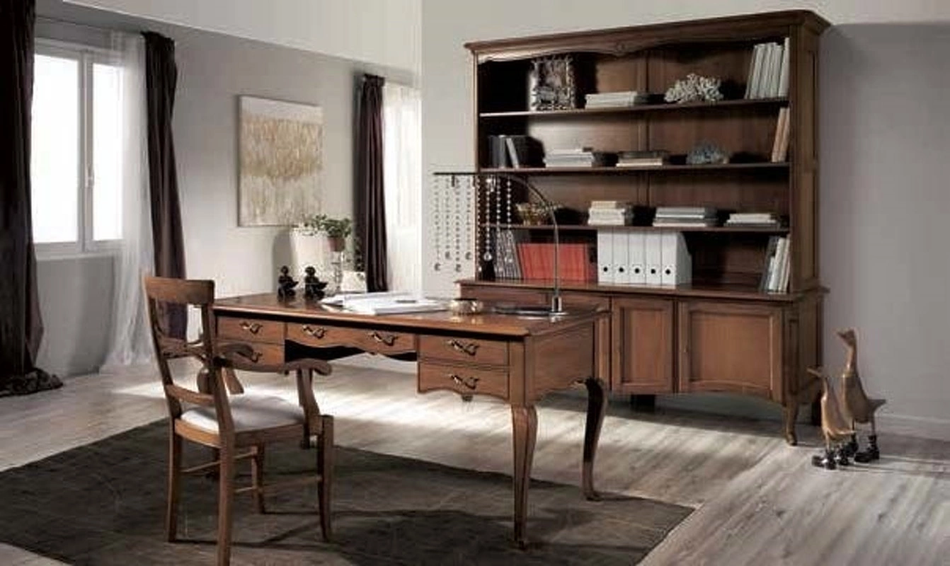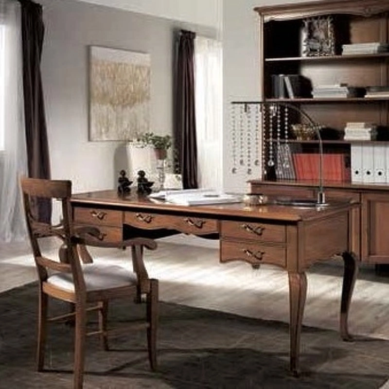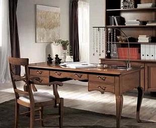 Письменный стол на изогнутых ножках выполнен в классическом стиле. Оснащен пятью выдвижными ящиками.
