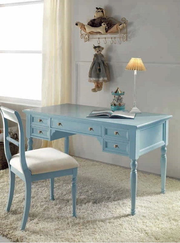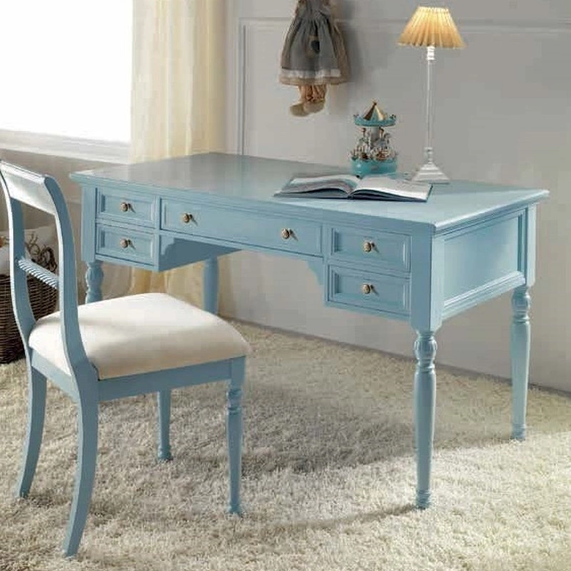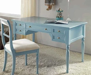 Письменный стол на фигурных ножках выполнен в классическом стиле. Оснащен пятью выдвижными ящиками.