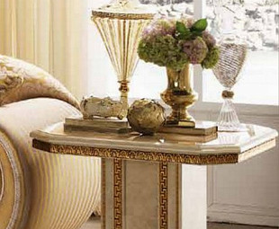 Стол под лампу Leonardo итальянского производителя Arredo Classic выдержан, как и все предметы коллекции, в неоклассическом стиле, легком и избавленном от излишнего пафоса. Высокая устойчивая ножка-опора венчается многогранной столешницей, по контуру украшенной резными золотистыми накладками и граненым рельефом. Модель будет прекрасно смотреться рядом с трехместным диваном, мягким креслом или у большого зеркала во всю стену.