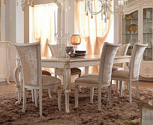Обеденный стол элит-класса коллекции Prestige beige. Стол имеет две вставки для увеличения длинны, сделан из массива натурального дерева в бежевой отделке. Большой красивый стол для гостиной сможет разместить всех ваших гостей на любом домашнем мероприятии