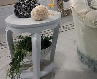 Приставной журнальный столик La Belle Epoque круглой формы выполнен из цельного дерева в отделке шпоном ореха. Оснащен открытой полкой. Стильная и вместе с тем функциональная модель с высокими ампирными ножками и искусной декоративной резьбой станет прекрасным дополнением к интерьеру классической гостиной.