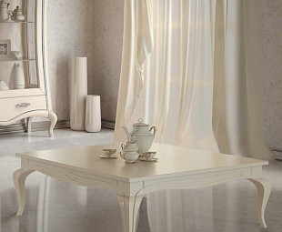 Невысокий журнальный столик My Classic Dream квадратной формы представляет классический стиль. Об этом свидетельствуют изящные изогнутые ножки и фигурная резьба, окаймляющая столешницу по периметру. Модель выполнена из массива дерева в отделке шпоном ореха и черного дерева.