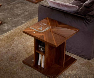 Столик для лампы Opera выполнен в стиле модерн. Cтолик имеет геометрический узор выполненный из высококачественного шпона ореха, это придает стильный и элегантный вид. Столик сделан из качественных пород древесины, дополнен шпоном ореха и покрыт глянцевым многослойным лаком. Великолепный столик Opera от итальянских производителей с текстурой натурального дерева и лакированным покрытием, дополнит самый изысканный интерьер вашего дома.