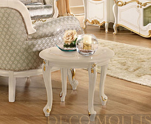 Классический столик, выполненный из массива ценных пород дерева в белом цвете. Роскошная антикварная мебель, выполненная в чарующем дизайне старины прошлых веков. Плавные формы мебели украшает элегантная позолоченная лепка из дерева, что подчеркивает торжественность композиции. Столик изготовлен по специальным технологиям обработки дерева и покрыт высококачественным лаком. Роскошный столик не оставит равнодушным любителей классической мебели.