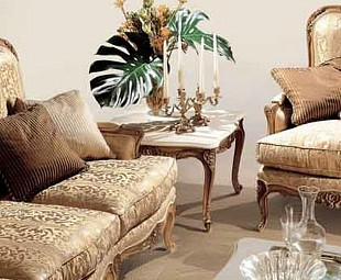 Квадратный маленький кофейный столик из ценных пород дерева со светлой мраморной столешницей. Тонкие резные ножки спускаются вниз плавным изгибом, гармонично завершая задуманную дизайнером идею. Вся коллекция сделана в стиле салонов Людовика XV, в основу которого лег поиск комфорта и легкости взамен старой тяжеловесности.