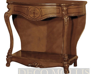 Консольный столик Angelina от торговой марки Carvelli. Консольный столик выполнен в классическом стиле и имеет плавные линии. Роскошный столик сделан из массива березы, с добавлением ручной лепки и росписи. Стильный консольный столик дополнит интерьер вашей гостиной.