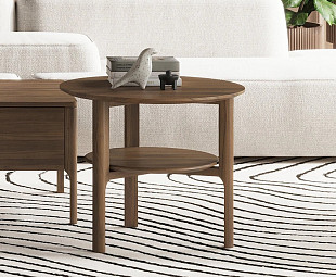 Приставной столик изготовлен из высококачественного шпонированного МДФ высокой плотности. Столешница в отделке шпон ореха.