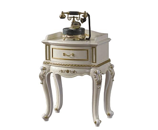Столик под телефон коллекции Принцесса изготовлен из МДФ и покрыт кэшированной пленкой цвета слоновая кость. Для удобного пользования под крышкой сделан небольшой выдвижной ящик для хранения записной книжки.