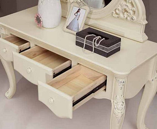 С двух сторон расположены выдвижные ящики, а сверху зеркало в роскошной раме.