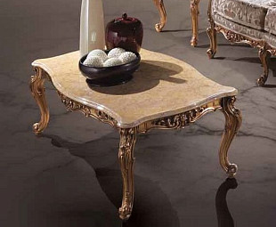 Великолепный журнальный столик из Италии в стиле "Барокко" будет прекрасным приобретением для Вашей элегантной, по-королевски оформленной гостиной. Столешница прямоугольной формы из натурального камня - мрамора имеет свой, уникальный рисунок и текстуру. Цвет может быть подобран на Ваш вкус. Роскошные ножки и царги оформлены резьбой ручной работы и покрыты патинированным сусальным золотом. Все материалы и декор вы можете выбрать индивидуально.
