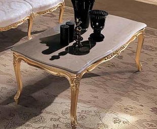 Прямоугольный журнальный столик, полностью выполненный только из элитных материалов Премиум-класса. Массив дерева дорогих пород, обильное покрытие сусальным золотом деревянных частей, светлая мраморная столешница. Та мебель, которая всегда будет говорить об отменном вкусе и благосостоянии ее владельца. Декор и материалы можно выбрать в Ваш вкус.