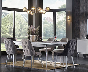 Стул с деревянными ножками для столовой Loretto также обладает элегантным и стильным дизайном. Он идеально гармонирует с обеденным столом из этой коллекции, придавая интерьеру уют и изысканность. Цена за 2 стула.