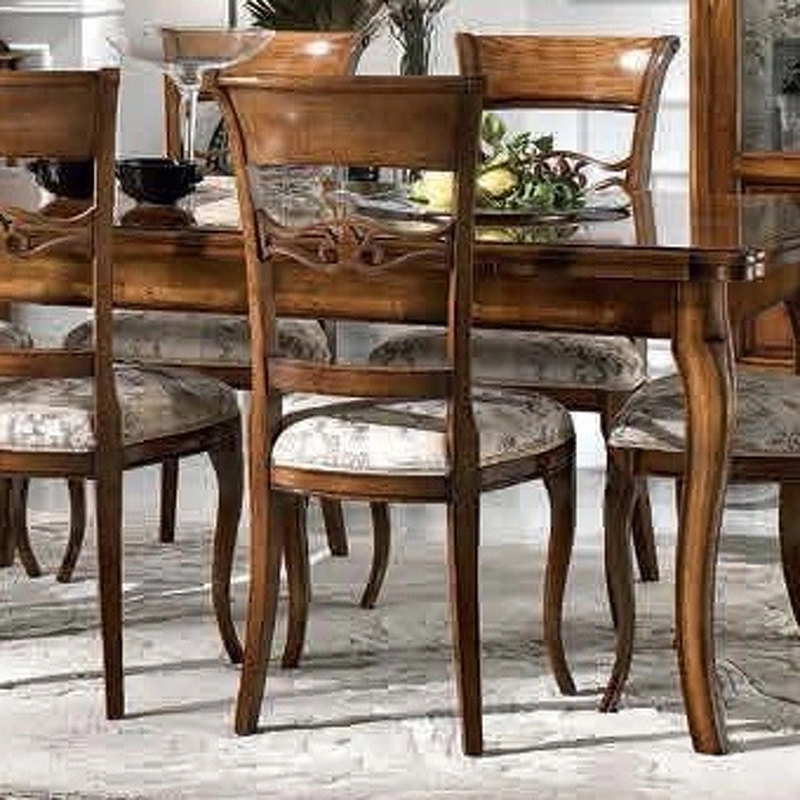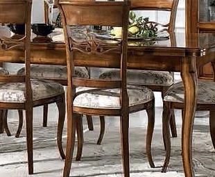 Стул на изогнутых ножках выполнен в классическом стиле. Сиденье обтянуто тканью. Деревянная резная спинка подчеркивает оригинальность модели.