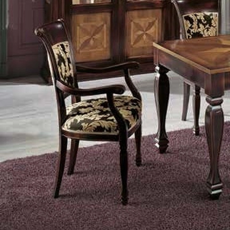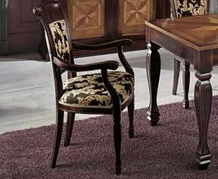 Стул на фигурных резных ножках выполнен в классическом стиле. Спинка и сиденье обтянуты тканью.
