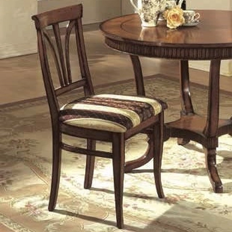 Стул выполнен в классическом стиле. Сиденье обтянуто тканью. Резная деревянная спинка подчеркивает оригинальность модели.