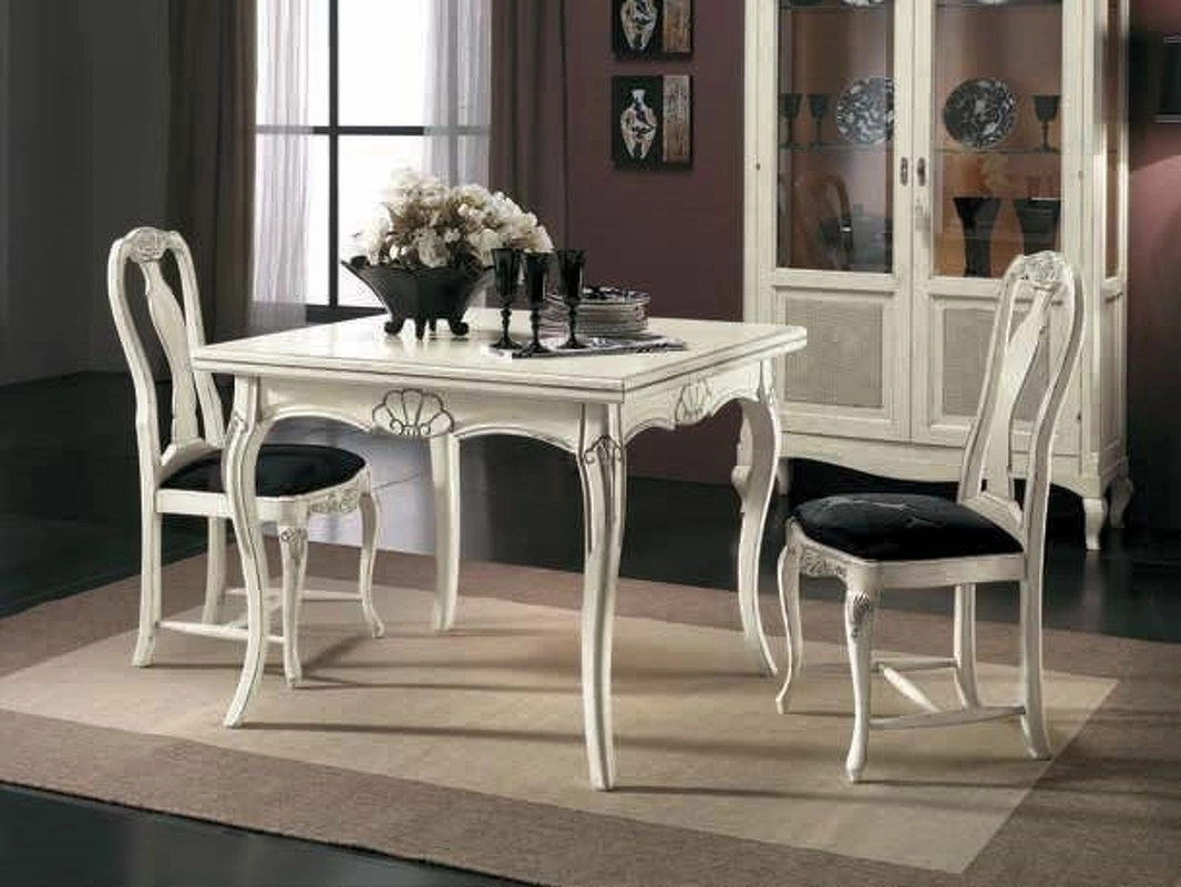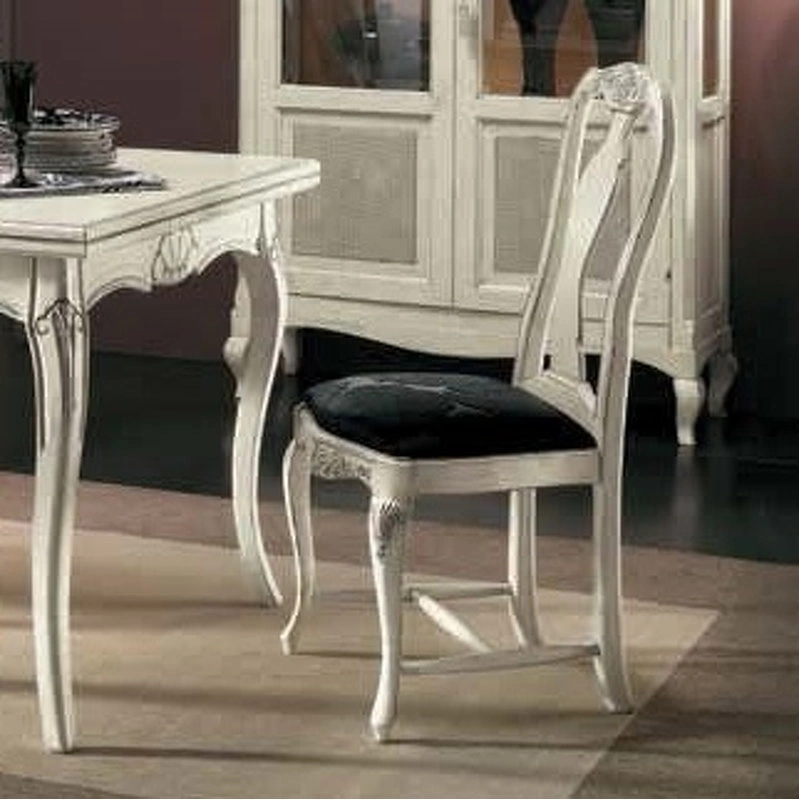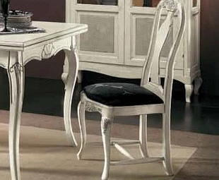 Стул на изогнутых ножках выполнен в классическом стиле. Сиденье обтянуто тканью. Резные детали подчеркивают оригинальность модели.