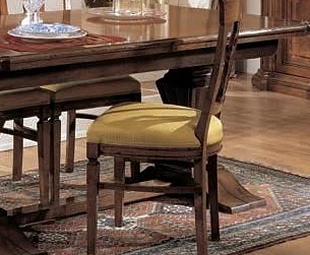 Стул на фигурных ножках выполнен в классическом стиле. Сиденье обтянуто тканью. Резная спинка подчеркивает оригинальность модели.