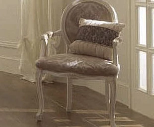 Стул на изогнутых ножках выполнен в классическом стиле. Декорирован резьбой. Медальонная спинка подчеркивает оригинальность модели.