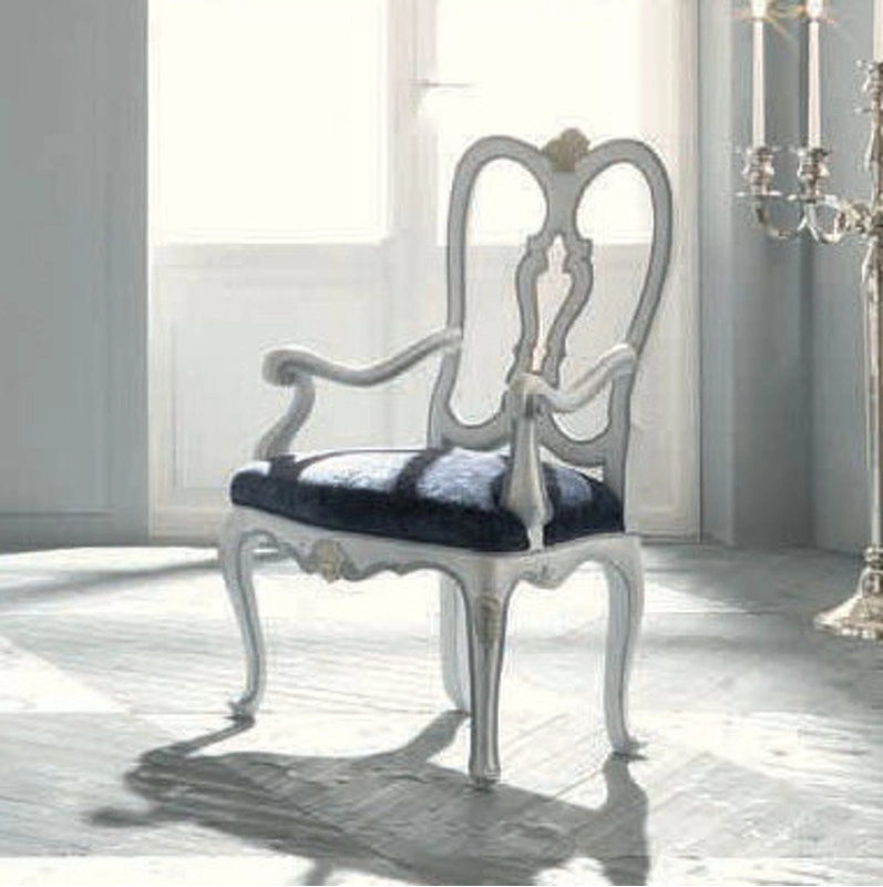 Стул на изогнутых ножках выполнен в классическом стиле. Декорирован резьбой.
