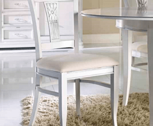 Стул из массива дерева Белый Marco Polo станет гармоничным дополнением обеденной группы из коллекции. Резная спинка украшена декоративным узором с сусальным серебром, а сиденье отделано обивкой из эко кожи молочного оттенка.