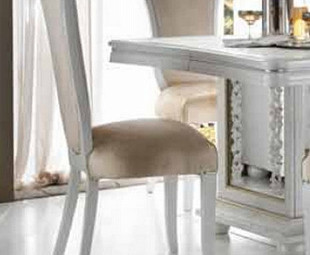 Стул классический Miro мебельного концерна Arredo Classic сделан из высокотехнологичного МДФ, гибкого при производственных процессах и эффективного в эксплуатации. Оттенок белого перламутра нежно подчеркивает всю легкость и воздушность неоклассики в дизайне коллекции. Модель имеет мягкое сиденье и спинку изящной фигурной формы, оббитые тканью благородного золотого цвета, красивые, немного гнутые ножки. Прекрасно комплектуется с обеденным столом. Производителем предлагается также вариант с подлокотниками.