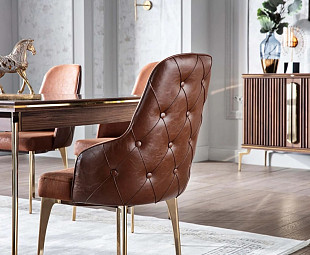 Элегантный стул с боковой поддержкой для гостиной Montego отличается современным стилем и изысканностью. Изготовленный из кожзама и обитый качественным нубуком, он добавит роскоши и комфорта в ваш интерьер. Золотистые металлические ножки придают стулу особый шарм и элегантность, делая его незабвенным элементом обстановки.