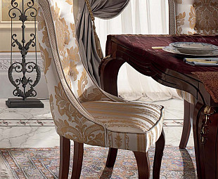 Очаровательный обеденный стул Premiere Classe - мягкий, удобный с изогнутыми ножками и фигурным корпусом. Спинка украшена двумя рядами декоративных пуговиц. Изделие выполнено из натурального дерева в отделке шпоном ореха, драпировано кожей или тканями благородных расцветок с винтажным принтом и золотым тиснением. В качестве набивки использован полиуретановый наполнитель.