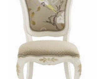 Стул в стиле прованс Веста изготовлен из бука белоснежного цвета с декоративной позолоченной росписью. Спинка и сидение обиты мягкой тканью и декорированы элементами природных мотивов сверху.