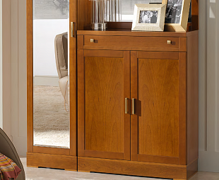Темный комод Tarfa в цвете орех производства испанской фабрики гармонично впишется в интерьер прихожей и создаст дополнительные места для хранения.