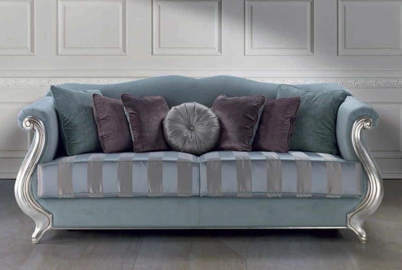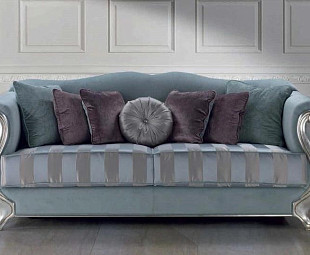 Трехместный диван выполнен в классическом стиле. Изогнутые подлокотники подчеркивают уникальность этой модели.