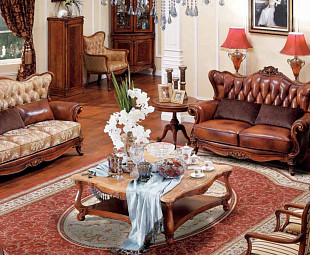 Диван из коллекции Carpenter 236. Роскошный кожаный диван для гостиной сделан из массива дерева в отделке цвета орех, с добавлением ручной лепки и декоративной резьбы. Диван в обивке из кожи в цвете орех и топленое молоко. Изящный и стильный диван выполнен в классическом стиле и прекрасно впишется в самый роскошный интерьер.