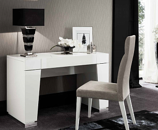 Туалетный столик белый с откидным зеркалом Canova станет отличным элементом декора вашей комнаты. Элегантный дизайн и отделка каррарским мрамором украсит спальный гарнитур.