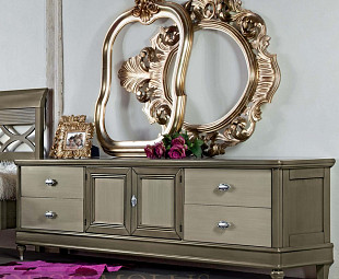 Тумба для спальни под ТВ коллекции Бурбон сохранила все характеристики 18-19 веков, которые отражаются в роскошном интерьере спальни. Тумба сделана в классическом стиле из высококачественного массива дерева. Тумба выполнена в серо-бежевом патинированном цвете, что гармонично сочетается со специально подобранными элементами декора. Тумба Бурбон интерпретирует вкус и потребности тех, кто любит деревянную мебель, поэтому каждый элемент – это подлинная составляющая и настоящее произведение искусства для вашего дома.
