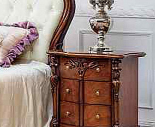 Тумба прикроватная Эмили. Тумба выполнена в классическом стиле и украшен ручной лепкой. Тумба имеет три выдвижных ящика для хранения ваших вещей. Тумба сделана из МДФ и в отделке цвета темный орех. Роскошная тумба дополнит интерьер вашего дома.