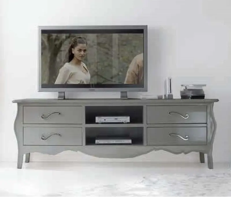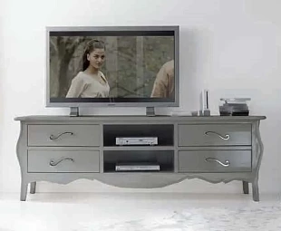 Тумба под TV выполнена в классическом стиле. Оснащена открытыми полками и ящиками. Фигурная кромка передней панели подчеркивает оригинальность модели.