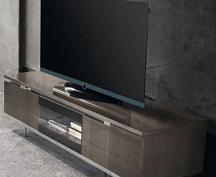 Элегантная тумба под телевизор Athena подойдет для установки практически любой современной модели. Изделие характеризует продуманный лаконичный дизайн и функциональное оснащение. Особый акцент сделан на выдвижной ящик, декорированный стеклом, для содержания видеоаппаратуры.