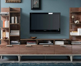 Тумба под телевизор низкая Serena может использоваться как отдельный предмет интерьера или в комплекте с книжными стеллажами. Отделка из шпона дерева Koto в нежном цвете "Вяз ваниль глянцевый". Современный и линейный дизайн подчеркивается основанием с ножками из окрашенного металла. Три вместительных отделения, скрытых за распашными дверцами и 3 открытых ниши позволят рационально хранить вещи.