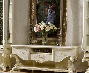 Тумба под ТВ белая классическая Роксолана гармонично впишется в интерьер гостиной в итальянском стиле.