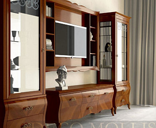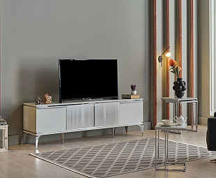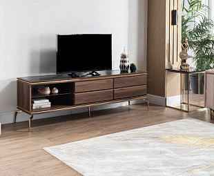 Многофункциональная тумба под телевизор "Монтего" является частью роскошной турецкой стенки. Она вмещает телевизор больших размеров и предлагает много места для хранения. Оснащена 4 выдвижным ящиками и полками. Этот стильный и практичный элемент добавит уют и функциональность в вашу гостиную.