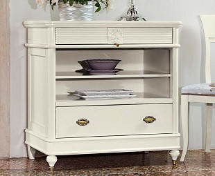 Тумба под ТВ в гостиную коллекции Бурбон сохранила все характеристики 18-19 веков, которые отражаются в роскошном интерьере спальни. Тумба выполнена в натуральном цвете слоновая кость, что является воссозданием утонченного французского вкуса. Тумбочка сделана в классическом стиле из высококачественного массива дерева. Тумба выполнена в цвете слоновая кость, что гармонично сочетается со специально подобранными элементами декора. Тумба Бурбон интерпретирует вкус и потребности тех, кто любит деревянную мебель, поэтому каждый элемент – это подлинная составляющая и настоящее произведение искусства для вашего дома.