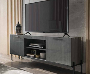 Шпон дерева, глянцевый лак, металлические элементы в черной отделке
