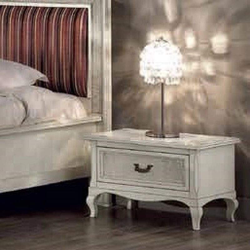 Прикроватная тумбочка на изогнутых ножках выполнена в классическом стиле. Оснащена выдвижным ящиком.