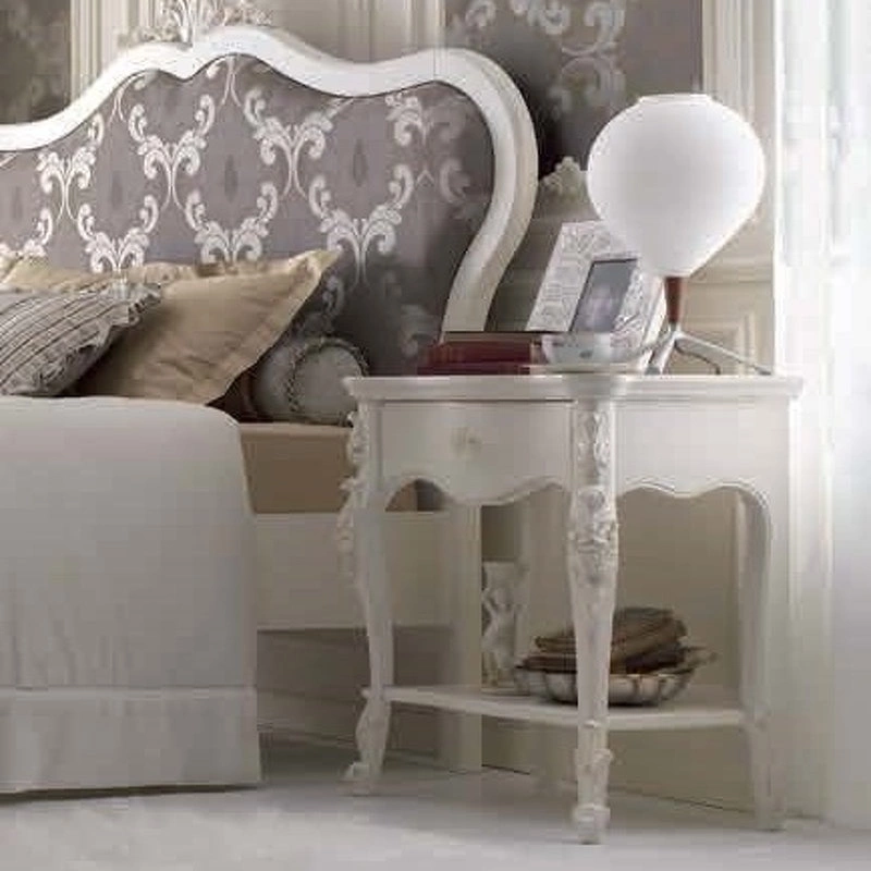 Прикроватная тумбочка на изогнутых ножках выполнена в классическом стиле. Декорирована резьбой. Оснащена выдвижным ящиком и открытой полкой.