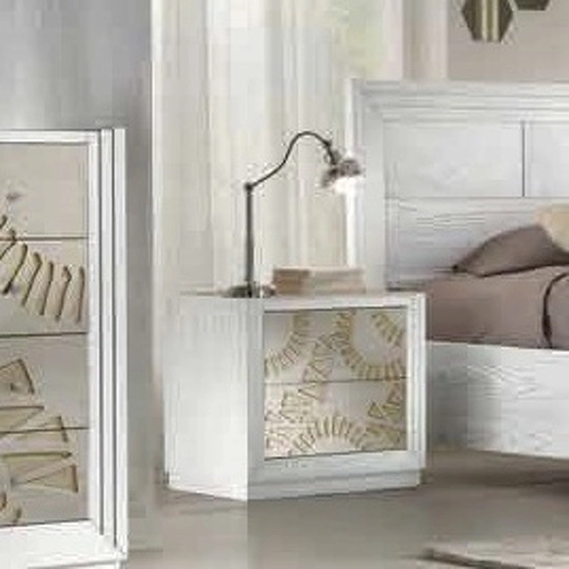Прикроватная тумбочка выполнена в неоклассическом стиле. Оснащена двумя выдвижными ящиками. Фасады декорированы орнаментом.