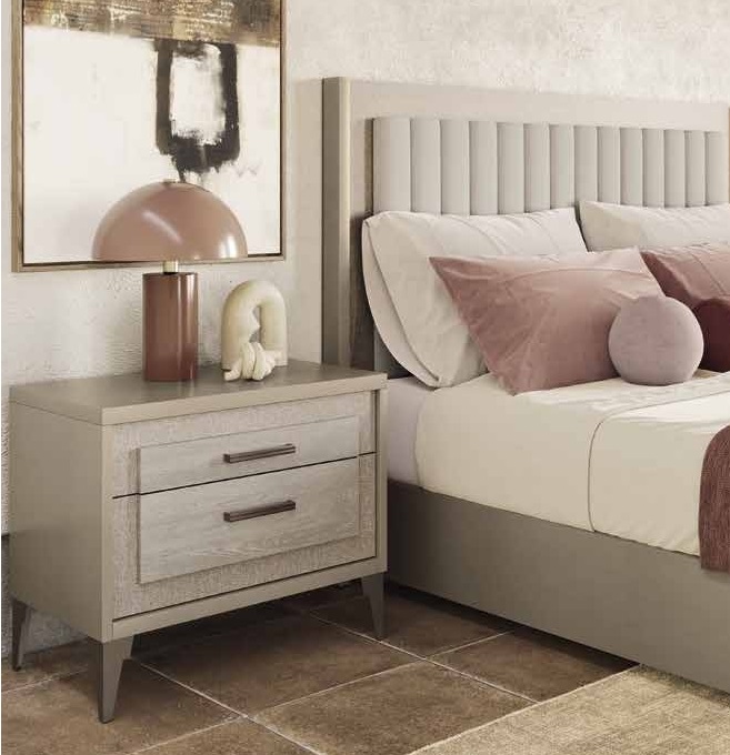 Прикроватная тумбочка c двумя выдвижными ящиками в современном стиле.