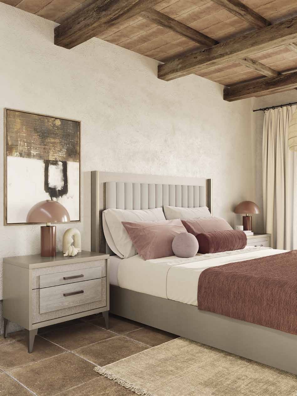 Фасады ящиков - эко шпон беленого дуба, боковины в отделке глянцевым бежевым лаком.