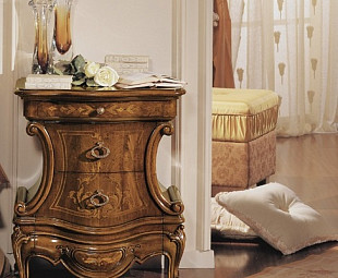 ПРАВАЯ прикроватная тумбочка из серии Giotto великолепна, её золоченые борта и ручной работы ручки и ножки выдают в ней особу аристократического рода. Всем своим видом она демонстрирует, что НЕЛЕВАЯ... во всем придерживается исключительно ПРАВЫХ взглядов, хотя и соглашается на неизбежный союз с ЛЕВОЙ прикроватной тумбочкой Giotto.