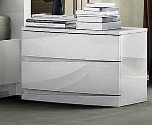 Тумбочка прикроватная современная Норман элегантно дополнит интерьер с итальянским стилем модерн. Изготовлена из МДФ белоснежного оттенка, имеет два выдвижных ящика для хранения, глянцевые фасады декорированы хромированными вставками.