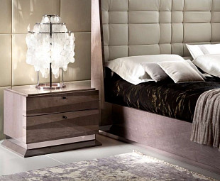 Тумбочка прикроватная современная Monaco станет неотъемлемой частью интерьера спальни. Два выдвижных ящика для удобства хранения, оригинальный геометрический узор на глянцевых фасадах цвета "Капучино". Необычное основание и отделка шпоном дерева Кото. Грация и элегантность Италии.