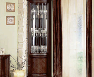 Угловая витрина для посуды Wersal производится из МДФ с отделкой из шпона (боковые и фасадные панели), и массива ольхи и бука (рамка и ножки). Повысит функциональную полезность комнаты, и создаст дополнительное место для украшения помещения.